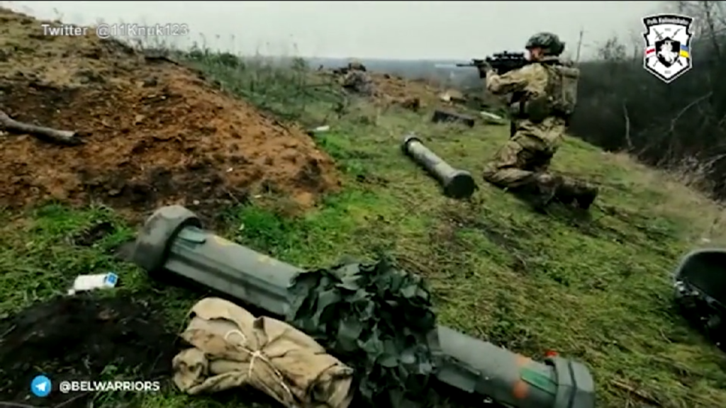 I volontari bielorussi sparano missili anticarro contro obiettivi militari russi in Ucraina. Il video è stato diffuso dal Reggimento Kastuś Kalinoŭski, che è stato integrato all’esercito ucraino. L’azione probabilmente è stata filmata nella regione del Luhansk, dove attualmente i miliziani bielorussi sono dispiegati sul campo per la riconquista dell’area del Donbass.
