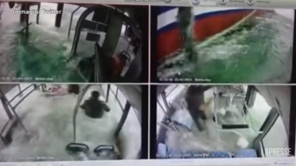 Un autobus con a bordo 7 persone è caduto in un lago nella città di Malatya, in Turchia. Il conducente avrebbe perso il controllo del mezzo che è finito in acqua. Nelle immagini della telecamera di sicurezza si vede il panico dei passeggeri mentre l’acqua entra all’interno del bus dopo che è finito nel lago. Le persone a bordo sono state portate in salvo: 3 i feriti, ma nessuno in modo grave.