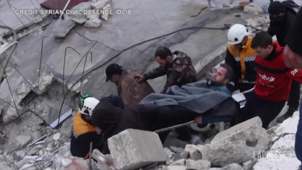 I soccorritori siriani estraggono un superstite dalle macerie lasciate dal violento terremoto che ha colpito il Paese e la Turchia nella notte tra domenica e lunedi. Le vittime accertate al momento sono oltre 600, ma il bilancio è destinato a salire. Sono decine gli edifici crollati in tutta la regione: i filmati catturati dalla Difesa civile siriana a Idlib hanno mostrato le operazioni di recupero, con l’utilizzo di bulldozer per rimuovere le macerie.
