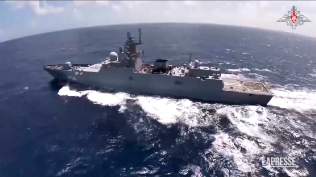 Il Ministero della Difesa russo ha diffuso venerdì un filmato delle esercitazioni navali nell’Atlantico effettuate dall’equipaggio della fregata Admiral Gorshkov, armata con razzi da crociera ipersonici antinave. Mosca sostiene che il missile 3M22 Zircon può eludere le difese aeree occidentali volando a oltre 11 mila km/h. L’equipaggio ha effettuato un bombardamento di artiglieria contro un bersaglio marino, come parte della esercitazione navale congiunta con la Marina della Repubblica del Sudafrica e la Marina dell’Esercito della Cina. Entrata in servizio nel 2018 dopo lunghe prove, la Admiral Gorshkov è la prima nave della nuova serie di fregate progettate per sostituire gli obsoleti cacciatorpediniere di costruzione sovietica come componente d’attacco chiave della marina russa. Armata con una serie di missili, la nave è lunga 130 metri (427 piedi) e ha un equipaggio di circa 200 persone.