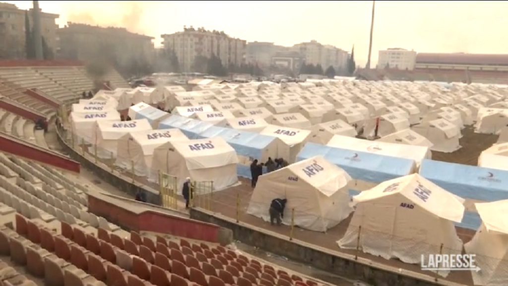 Le autorità turche hanno messo in piedi una tendopoli per gli sfollati nello stadio di Kahramanmaras, a 75 km da Gaziantep, nel sudest del paese, una delle aree colpite dal devastante sisma di lunedì. Organizzazioni umanitarie locali e internazionali hanno distribuito pasti caldi, tende e coperte alle persone rimaste senza casa.