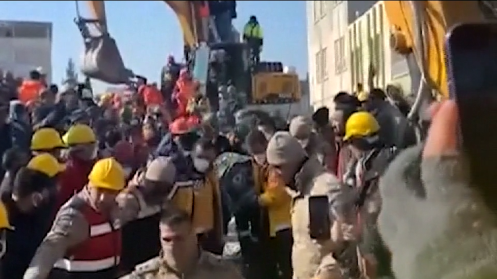 I soccorritori, nella città turca di Adiyaman, hanno recuperato viva una donna che era sotto le macerie da 128 ore dopo il disastroso terremoto che ha colpito il Paese. Emine Murat è stata portata via dai soccorritori su una barella, mentre altri soccorritori continuavano le ricerche.