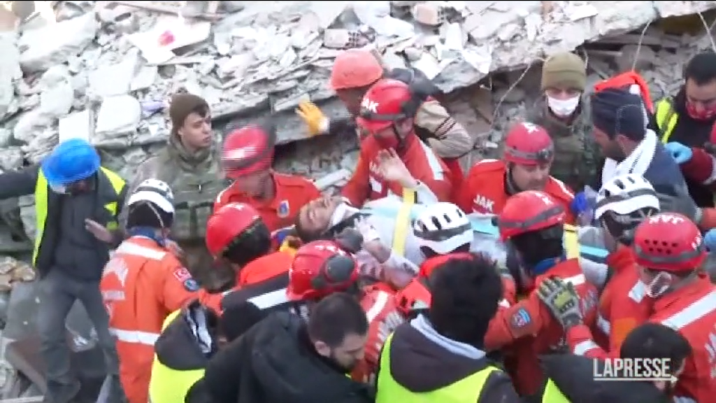 Dopo aver sentito delle voci provenire da sotto le macerie, i soccorritori hanno estratto vivo un uomo da sotto un edificio crollato ad Antakya. Il 23enne sopravvissuto era uno dei nove ancora intrappolati. Quando gli è stato chiesto se fosse a conoscenza di altri sopravvissuti, ha risposto che non sentiva voci da tre giorni. Trasportato su una barella tra gli applausi degli operai che urlano “Dio è grande!”.