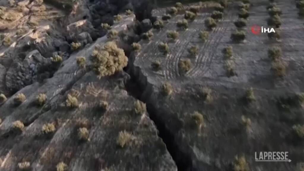 Il terremoto che ha colpito Siria e Turchia tra il 5 e il 6 febbraio ha devastato due interi Paesi e le loro popolazioni. Al momento il bilancio dei morti sfiora quota 41mila. Le immagini riprese da un drone mostrano un’enorme spaccatura nella città di Altinozu, nella provincia meridionale di Hatay, Turchia. Il canyon creato dal sisma è largo 200 metri, profondo 30 e si estende su 35 acri di terreno.
