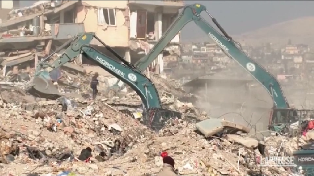 Si continua a scavare tra le macerie in Turchia a più di una settimana dal devastante sisma che ha provocato distruzione in diverse zone del Paese e della Siria uccidendo oltre 40 mila persone. Al lavoro senza soste i soccorritori con le ruspe che scavano tra le macerie (Nelle immagini Kahramanmaras e Diyarbarkir). La speranza è di ritrovare in vita ancora dei dispersi. Due fratelli sono stati estratti vivi dalle macerie nella provincia di Kahramanmaras dopo 198 ore dal terremoto