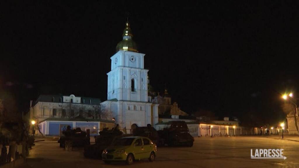 Le campane della chiesa di San Michele, a Kiev, suonano a mezzanotte. La capitale ucraina ricorda anche così il primo anniversario dell’invasione russa, iniziata il 24 febbraio del 2022.