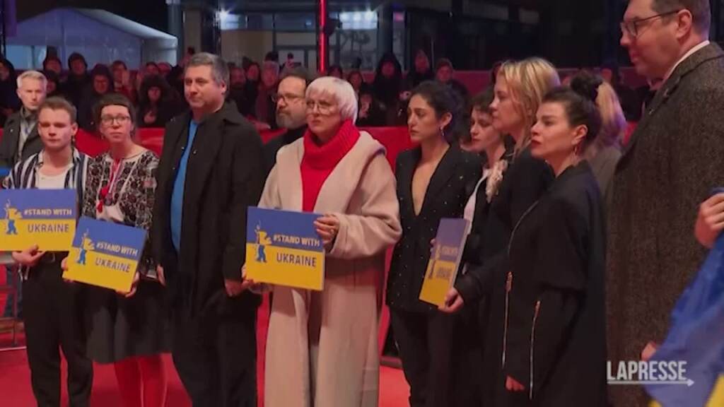 I partecipanti al festival del cinema di Berlino hanno messo in atto un’azione dimostrativa a sostegno dell’Ucraina mentre sfilano sul tappeto rosso. Tra i manifestanti l’ambasciatore ucraino S.E. Oleksii Makeiev e il ministro tedesco della Cultura e dei media Claudia Roth. Sono rimasti in silenzio con cartelli con i colori della bandiera dell’Ucraina e la scritta “Stai con l’Ucraina“.