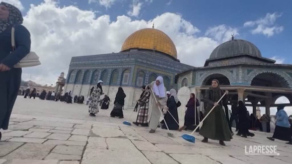 Ultimi preparativi a Gerusalemme prima dell’inizio del mese sacro musulmano del Ramadan. Alcuni volontari palestinesi si sono impegnati negli ultimi ritocchi del complesso della Moschea di Al-Aqsa. Si teme un’ulteriore escalation della tensione tra israeliani e palestinesi dopo le violenze degli ultimi giorni. Decine di migliaia di fedeli musulmani si recano a Gerusalemme per partecipare alle preghiere presso il complesso di Al-Aqsa, sacro anche per gli ebrei che lo chiamano Monte del Tempio. Dall’inizio dell’anno almeno 83 palestinesi, circa la metà dei quali affiliati a gruppi militanti, sono morti nei raid israeliani in Cisgiordania. Nello stesso periodo 14 persone – tutte civili tranne una – sono state uccise in attacchi palestinesi contro israeliani.