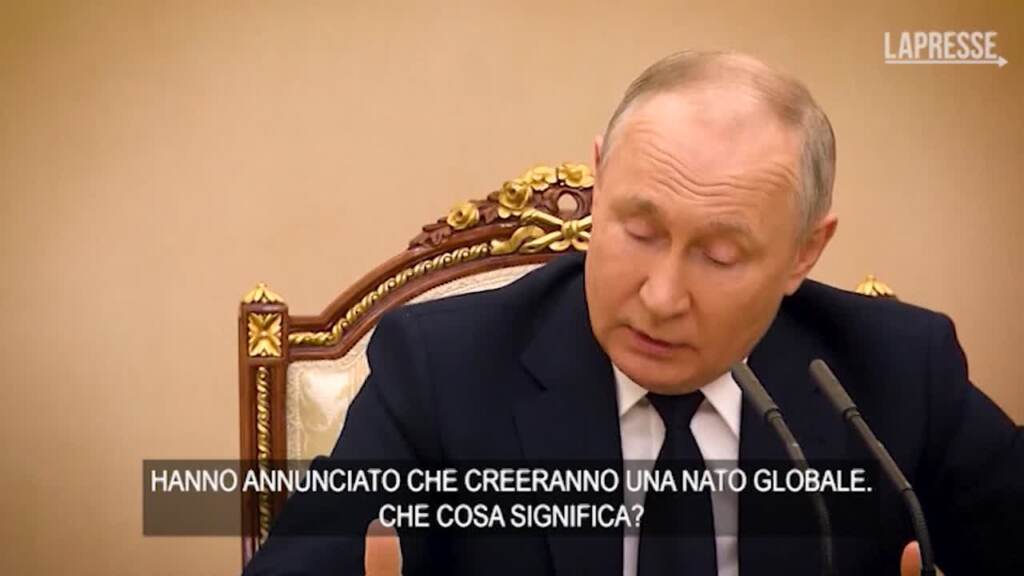 “Hanno annunciato che creeranno una Nato globale. Che cosa significa? All’inizio di quest’anno Gran Bretagna e Giappone hanno firmato un trattato di apertura reciproca, per stabilire contatti e sviluppare relazioni nella sfera militare. Per questo non noi, ma gli analisti occidentali, dicono che l’Occidente sta iniziando a creare un nuovo asse come quello che venne creato negli anni ’30 dai regimi fascisti in Germania e Italia e dal Giappone militarista”. Così il presidente russo Vladimir Putin in un’intervista alla tv di Stato russa.