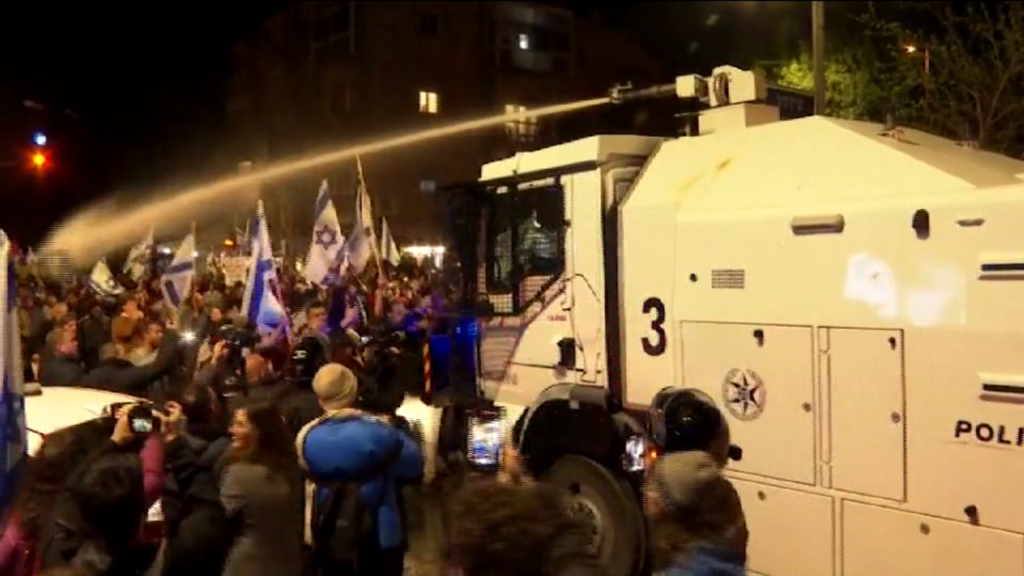 Violenti scontri tra manifestanti e polizia davanti alla residenza a Gerusalemme del primo ministro israeliano Benjamin Netanyahu in una nuova protesta contro la riforma all’esame della Knesset, voluta dal leader del Likud. Netanyahu ha licenziato il il ministro della Difesa Yoav Galant (contrario al provvedimento) e dimostrazioni sono scoppiate in tutto il paese. Gli agenti hanno disperso con cannoni ad acqua i manifestanti davanti alla casa del premier.