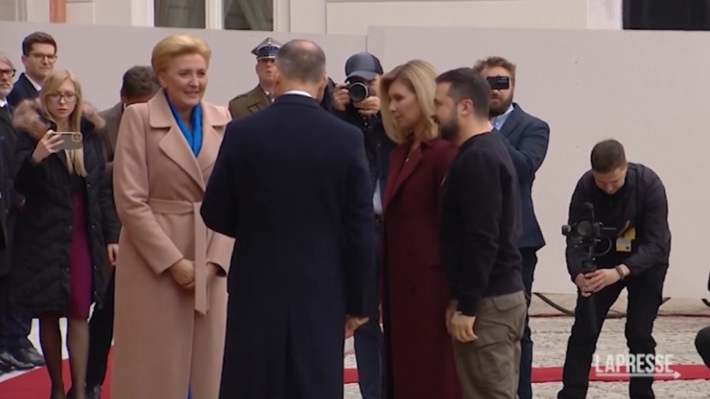 Le immagini dell’arrivo del presidente ucraino Volodymyr Zelensky in Polonia per la visita ufficiale insieme alla first lady Olena Zelenska. Come riportato dall’ufficio presidenziale polacco, dopo l’incontro degli ospiti con il presidente Andrzej Duda e sua moglie, i leader dei due Paesi terranno un colloquio nel palazzo presidenziale. Successivamente, avranno luogo i vertici tra le delegazioni.
