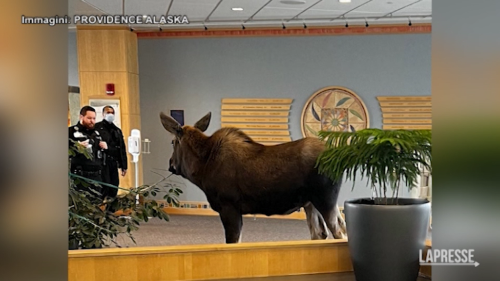 Un alce entra in un ospedale. Non è l’inizio di una barzelletta, ma un fatto realmente accaduto a Anchorage, in Alaska. Un giovane cervide che arrancava nella neve alla ricerca di un pasto è riuscito a penetrare nel Providence Alaska Health Park, attivando i sensori sulle porte automatiche dell’edificio che ospita il centro oncologico dell’ospedale e altri studi medici, e ha passeggiato per un po’ all’interno della struttura. Affamato, l’alce si è poi messo a mangiare alcune piante degli uffici, tra il divertimento generale della gente presente.