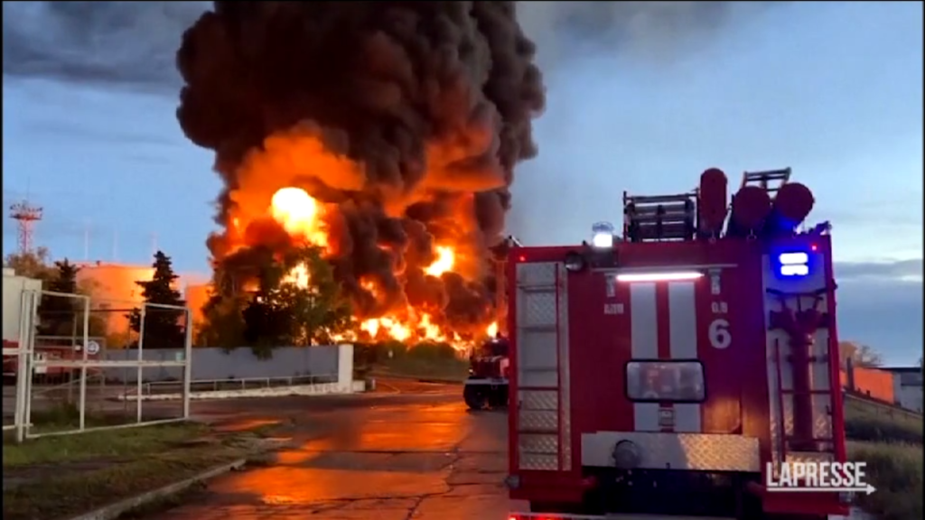 Un enorme incendio è scoppiato in un deposito carburanti nel porto di Sebastopoli, in Crimea, a causa dell’attacco di un drone. Mosca accusa Kiev del raid. Un video è stato pubblicato da Mikhail Razvozhayev, governatore di Sebastopoli nominato dalla Russia, sul proprio canale Telegram. Razvozhayev ha affermato che all’incendio è stata assegnata una classifica di quattro, il grado più alto possibile, il che significa che le fiamme sono estremamente complicate da contenere. Il funzionario ha aggiunto che non ci sono state vittime e che l’incidente non ostacolerà le forniture di carburante a Sebastopoli.