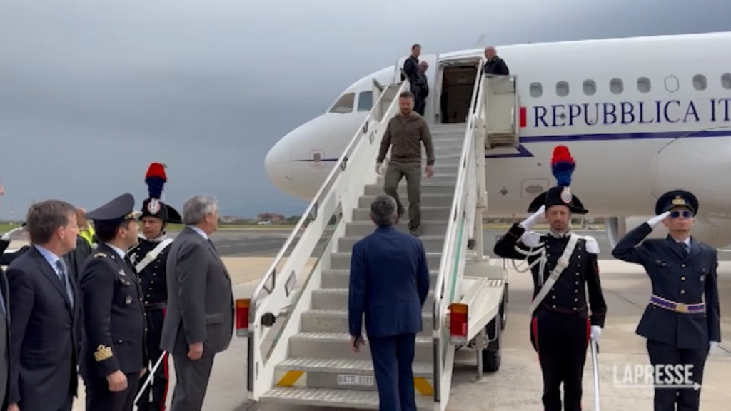 Volodymir Zelensky atterra a Roma, ad attenderlo il ministro degli Esteri Tajani. Roma blindata per la visita del leader ucraino. In agenda incontri con il capo dello Stato Mattarella, il premier Meloni e Papa Francesco.