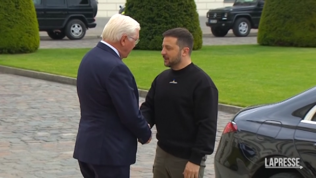 Il presidente ucraino Volodymyr Zelensky è stato ricevuto domenica mattina dal presidente tedesco Frank-Walter Steinmeier. Zelensky è arrivato al Bellevue Palace, il palazzo presidenziale tedesco a Berlino, dove, dopo un colloquio con Steinmeier, ha firmato anche il libro degli ospiti. In seguito per il presidente ucraino l’incontro con il cancelliere tedesco Olaf Scholz. Zelensky è arrivato a Berlino durante la notte, dopo la sua visita a Roma. In Germania riceverà il premio Carlo Magno ad Aquisgrana.