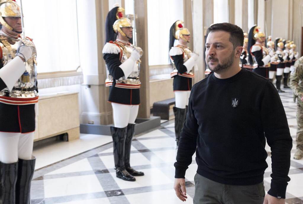 Per Zelensky la giornata romana è iniziata poco dopo le dieci quando l’Airbus A319 dell’Aeronautica Militare è atterrato all’aeroporto di Ciampino. Con indosso la sua ormai tradizionale felpa e i pantaloni mimetici, il presidente ucraino è stato accolto sulla pista da una delegazione che comprendeva, tra gli altri, il vicepremier Antonio Tajani. Il ministro degli Esteri e Zelensky si sono intrattenuti brevemente, prima che il presidente ucraino salisse sul suv nero che lo ha portato, insieme ad un’ingente scorta, all’hotel vicino a Villa Borghese che lo ha ospitato per la tappa romana. “La visita del presidente Zelensky è un riconoscimento all’importanza dell’Italia nel sostegno all’Ucraina“, ha commentato Tajani, in occasione dell’arrivo del leader ucraino, ribadendo il sostegno a Kiev “a 360 gradi”.