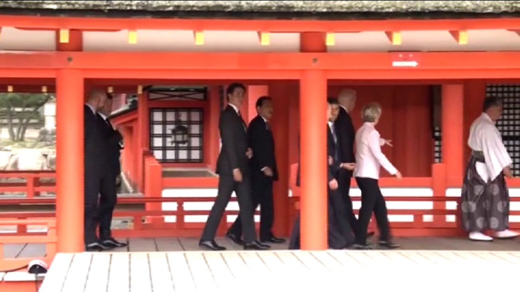 Dopo le prime due sessioni di lavoro del G7 a Hiroshima, i leader si sono spostati sull’isola di Miyajima per visitare il santuario di Itsukushima. Nel video anche il presidente americano Joe Biden che, mentre scende le scale, inciampa e rischia di cadere. Al termine della visita al sito dichiarato Patrimonio dell’umanità dall’Unesco, sempre sull’isola di Miyajima si terrà la cena di lavoro in cui i leader discuteranno di politica estera e sicurezza, compresi Indo-Pacifico, disarmo nucleare e non proliferazione.
