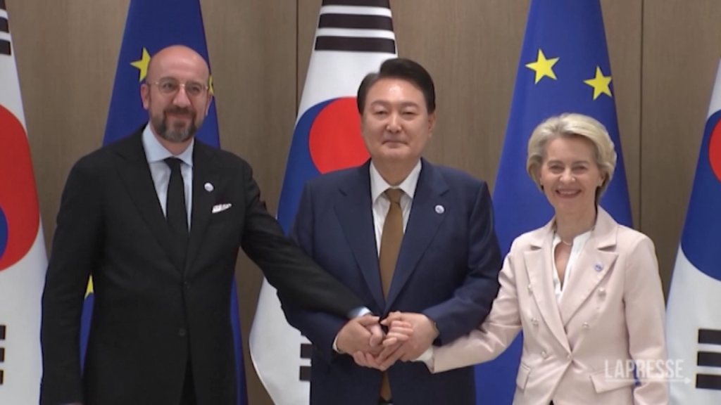 Il presidente sudcoreano Yoon Suk Yeol ha incontrato i leader dell‘Unione Europea. Al centro del vertice il rafforzamento della cooperazione bilaterale, i cambiamenti climatici e la sicurezza. Il presidente della Commissione europea Ursula von der Leyen e il presidente del Consiglio europeo Charles Michel sono arrivati a Seoul dopo la chiusura del vertice del G7, domenica a Hiroshima, in Giappone.