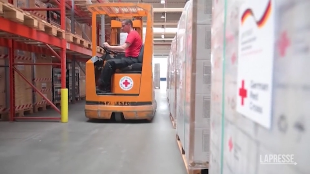 In Germania la Croce Rossa si prepara a mandare aiuti alle popolazioni alluvionate nella zona di Kherson in Ucraina dopo la distruzione della diga di Kakhovka. 33 tonnellate di materiale, tra cui prodotti per l’igiene e acqua potabile sono state portate dai camion all’aeroporto di Schoenefeld per essere portate in Ucraina.