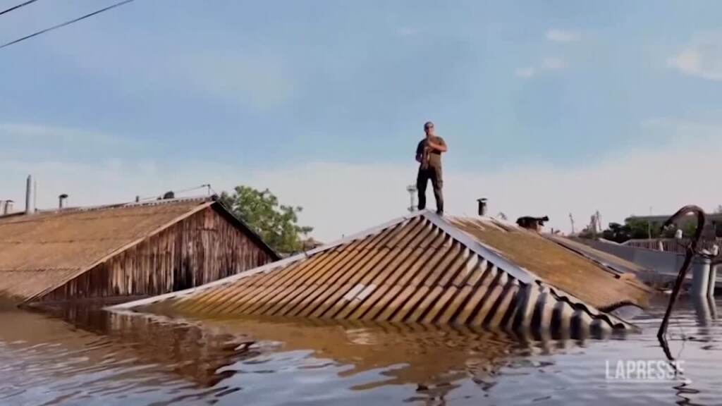 Un uomo suona il sassofono sul tetto di una casa allagata a Kherson, in Ucraina. Si chiama Andriy Levishchenko, volontario di 46 anni, che ha aiutato a portare in salvo migliaia di civili dall’area alluvionata. Tra le strade inondate e le abitazioni sommerse da acqua e fango risuona l’inno nazionale. Una donna poi grida: “Gloria all’Ucraina”. Buona parte dell’oblast di Kherson ha subìto enormi danni e allagamenti dopo che la diga di Kachovka è stata colpita e distrutta.