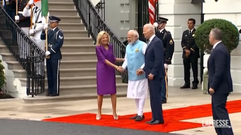 Il presidente degli Stati Uniti Joe Biden e il primo ministro indiano Narendra Modi hanno inaugurato la visita di Stato del leader di New Dehli giovedì lanciando nuove partnership nei settori della difesa, della produzione di semiconduttori e in altri settori. L’intento è di rafforzare le relazioni cruciali, anche se complicate, tra i loro Paesi. Migliaia di persone si sono radunate sul prato sud della Casa Bianca prima della cerimonia formale di benvenuto, ascoltando le esibizioni della violinista Vibha Janakiraman e del gruppo a cappella Penn Masala in attesa dell’arrivo di Modi.