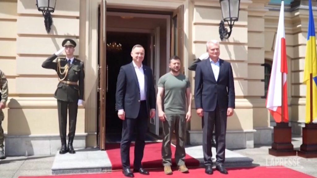 Volodymyr Zelensky ha incontrato e accolto nel palazzo presidenziale di Kiev, in Ucraina, i capi di Stato di Polonia e Lituania, Andrzej Duda e Gitanas Nauseda. “Sono lieto di dare il benvenuto ai nostri buoni, veri amici e partner”, ha scritto il leader ucraino sui social. “Nel giorno della Costituzione dell’Ucraina, questo incontro è un chiaro segnale di sostegno alla nostra libertà e alla nostra Europa, alla nostra aspirazione a vivere liberamente e secondo la legge”, ha aggiunto.