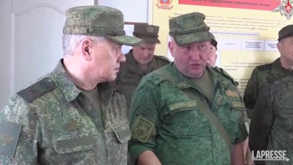 Il ministero della Difesa russo ha pubblicato un filmato che mostra il ministro della Difesa Sergei Shoigu che ispeziona l’addestramento al combattimento di soldati a contratto in un poligono di tiro nel distretto militare meridionale della Russia.