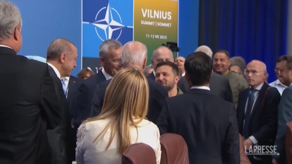 Seconda giornata di vertice Nato a Vilnius, in Lituania. Presenti i leader dei Paesi membri dell’Alleanza tra cui Joe Biden, Giorgia Meloni, Rishi Sunak, Recep Tayyip Erdoğan, Pedro Sanchez. Il presidente ucraino Volodymyr Zelensky, al suo ingresso in aula, è stato accolto con grandi sorrisi dai diversi capi di Stato e dal segretario generale della Nato Jens Stoltenberg.