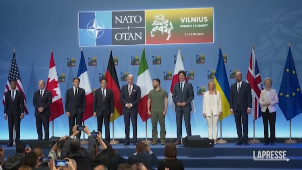 I leader del G7 hanno posato, al termine del vertice Nato a Vilnius, in Lituania, per una foto di rito con il presidente ucraino Volodymyr Zelensky, poco dopo aver annunciato un patto di sicurezza che aiuterà il paese di Kiev a rafforzare le sue forze armate a lungo termine. Zelensky ha accolto con favore gli accordi raggiunti in termini di ricezione di armi e munizioni per combattere l’invasione della Russia anche se ha espresso disappunto per la mancanza di un percorso chiaro per l’adesione del suo paese all’alleanza atlantica. “La delegazione di Kiev sta portando a casa una significativa vittoria in termini di sicurezza per l’Ucraina, per il nostro Paese, per il nostro popolo, per i nostri figli”, ha affermato Zelensky affiancato dal presidente degli Stati Uniti Joe Biden e dagli altri leader del Gruppo delle sette nazioni democratiche più potenti.