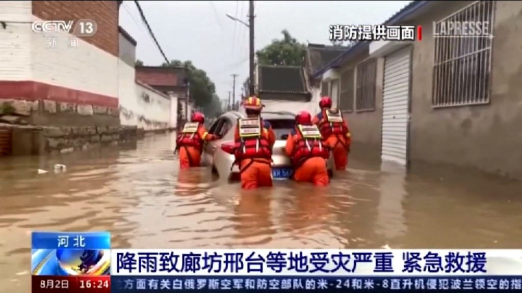 Proseguono i soccorsi, nella provincia di Hebei, nel Nord della Cina, dopo le forti alluvioni che hanno colpito il territorio. Secondo l’agenzia di stampa governativa Xinhua nove persone sono morte e altre sei risultano disperse. Quasi 850mila sarebbero state evacuate. La situazione è critica anche nelle aree attorno a Pechino dove il bilancio è di almeno 20 vittime e 27 dispersi. Le inondazioni hanno creato innumerevoli danni, tra cui strade distrutte, alberi sradicati ed energia elettrica fuori uso.