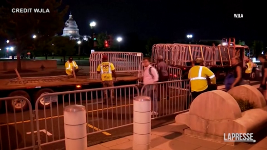Operai al lavoro per mettere in sicurezza l’area all’esterno del tribunale federale degli Stati Uniti a Washington in vista dell’arrivo dell’ex presidente Donald Trump, prevista per giovedì. Trump dovrà rispondere a a quattro capi d’accusa tra cui aver cercato di rovesciare i risultati delle elezioni del 2020, di fronte a un giudice a pochi isolati dal Campidoglio degli Stati Uniti che i suoi sostenitori hanno preso d’assalto per bloccare il trasferimento del potere presidenziale.