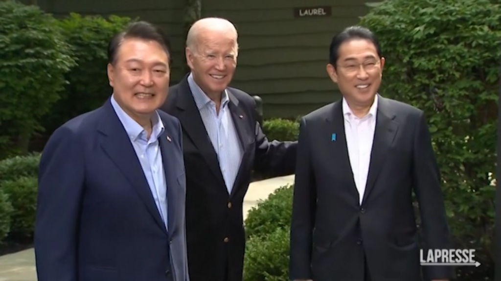 Al via il vertice di Camp David fra Stati Uniti, Giappone e Corea del Sud. Il presidente Usa Joe Biden ha aperto l’incontro con il presidente sudcoreano Yoon Suk Yeol e con il primo ministro giapponese Fumio Kishida. “Benvenuti”, ha detto Biden salutandoli e avvicinandosi per una foto. L’incontro giunge mentre gli alleati si sono accordati per un nuovo impegno sulla sicurezza, che prevede che si consulteranno fra loro in caso di una crisi o minaccia di sicurezza nel Pacifico. L’accordo è uno dei numerosi sforzi congiunti di cui si prevede l’annuncio durante l’incontro, in quanto i tre Paesi cercano di rafforzare i legami economici e di sicurezza tra le crescenti preoccupazioni per le persistenti minacce nucleari della Corea del Nord e le provocazioni della Cina nella regione.