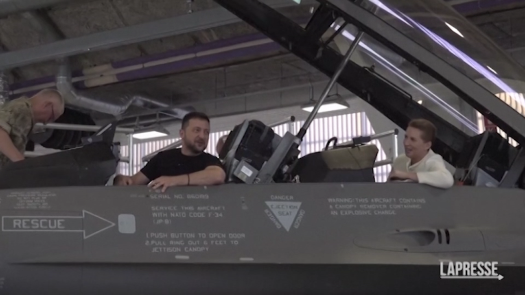 Il presidente ucraino Volodymyr Zelensky si è seduto all’interno di un caccia F-16 insieme al primo ministro danese Mette Frederiksen dopo che è stato confermato che Danimarca e Paesi Bassi forniranno gli aerei militari a Kiev con l’autorizzazione degli Stati Uniti. Zelensky è stato accolto all’arrivo alla base aerea di Skrydstrup vicino a Vojens dopo un breve volo da Eindhoven, dove aveva incontrato il primo ministro olandese.