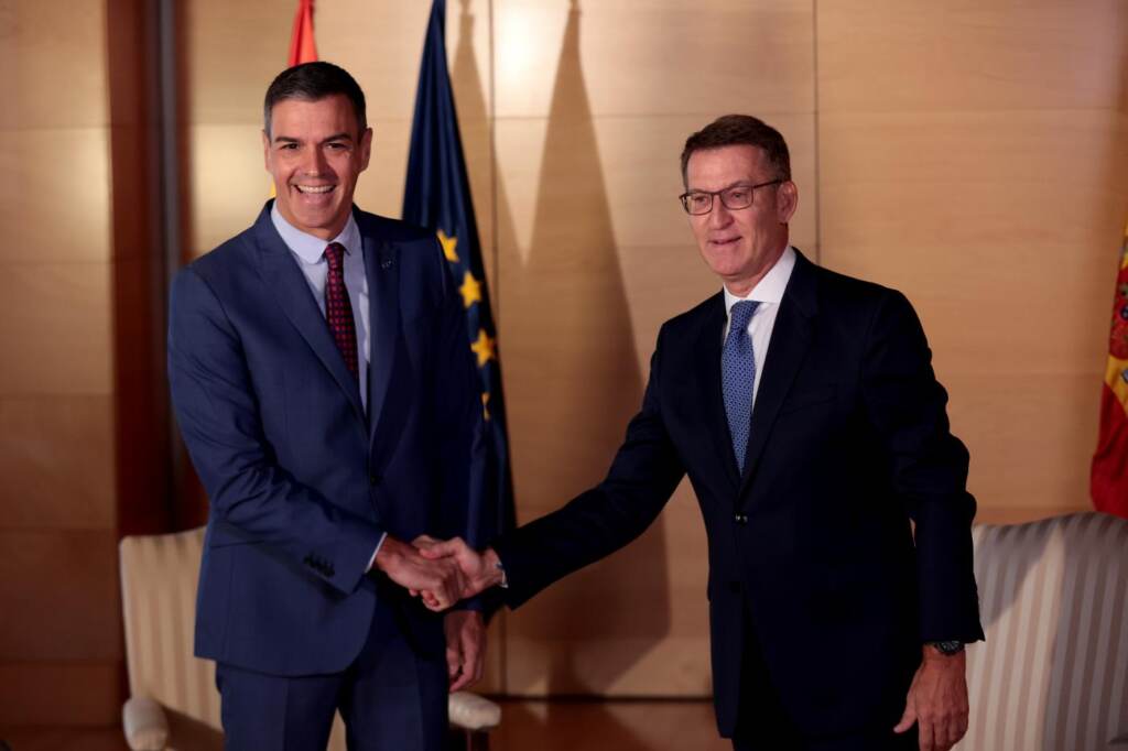 Il leader del Partito Popolare spagnolo Alberto Núñez Feijóo, ha proposto al premier ad interim socialista, Pedro Sanchez, di astenersi per facilitare la sua investitura come premier per guidare un governo ‘breve’ di due anni che implichi l’approvazione di sei Patti di Stato, in modo da evitare nuove elezioni in breve tempo e di lasciare troppo potere decisionale in mano agli indipendentisti catalani. Ne danno notizia i media spagnoli. Al termine dei due anni, secondo la proposta di Feijóo, si terrebbero nuove elezioni nazionali. Oggi Feijóo ha incontrato Sanchez al Congresso dei deputati nell’ambito dei contatti che il PP sta tenendo con tutte le forze politiche in vista della sessione d’investitura del popolare in programma il 26 e 27 settembre. L’incontro è durato appena un’ora. Sembra difficile che Sanchez possa accettare questa proposta visto che aspira a rimanere alla Moncloa e anche lui è in trattive con le varie forze politiche per arrivare alla maggioranza assoluta al Congresso dei deputati.