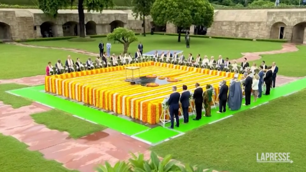 È cominciata a Nuova Delhi la seconda e ultima giornata del G20. Prima dell’avvio dei lavori i leader hanno visitato il Rajghat, ovvero il Memoriale di Mahatma Ghandi, deponendo una corona di fiori. Ad accoglierli il padrone di casa, il primo ministro indiano Narendra Modi, che ha donato a ciascuno una sciarpa tradizionale di seta grezza con sopra il simbolo del G20. Al termine della visita i leader si sono spostati al centro congressi Bharat Mandapam, sede ufficiale del vertice, per la terza e conclusiva sessione plenaria del G20 (‘One Future’) incentrata su transizione digitale, riforma delle istituzioni multilaterali e intelligenza artificiale, dove interverrà la presidente del Consiglio, Giorgia Meloni.