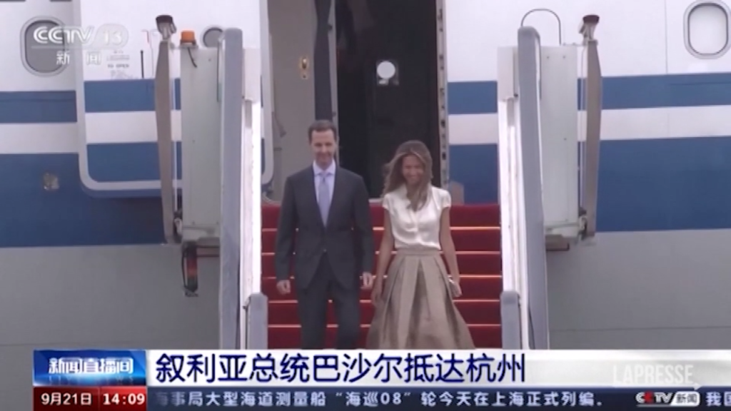 Il presidente siriano Bashar al-Assad è arrivato a Hangzhou in Cina giovedì, nella sua prima visita nel paese dall’inizio del conflitto nel suo paese, del quale Pechino è un alleato. Accompagnato dalla moglie Asma, il rais è nella città della provincia dello Zhejiang per partecipare sabato alla cerimonia di inaugurazione dei Giochi Asiatici.