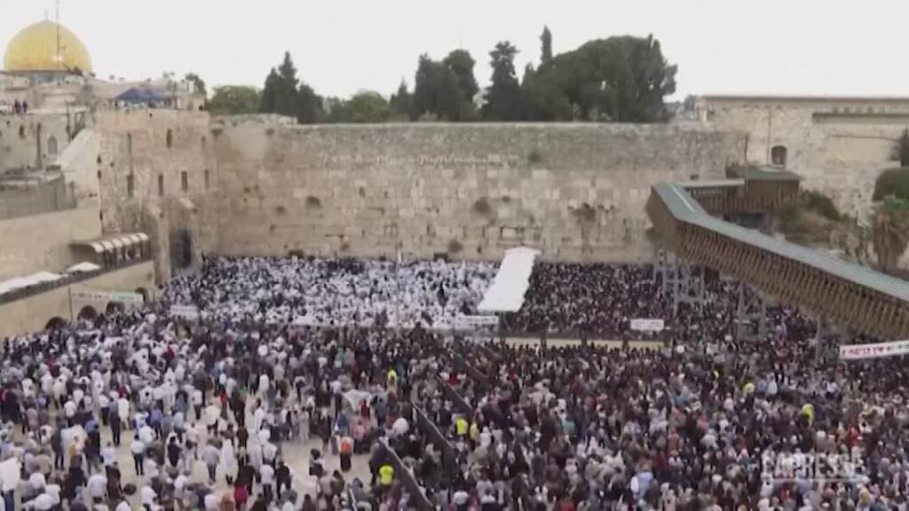 Migliaia di fedeli ebrei si sono riuniti al Muro del Pianto di Gerusalemme per la tradizionale preghiera di benedizione sacerdotale. Il Birkat Cohanim, o benedizione di Cohen, è un rituale che risale a più di 2.500 anni fa, quando si ritiene che il Tempio di Re Salomone sorgesse sullo stesso sito. La benedizione viene eseguita da uomini ebrei che possono far risalire il loro lignaggio alla casta sacerdotale. Tre volte all’anno arrivano al Muro del Pianto per benedire il popolo ebraico. La benedizione viene recitata in ebraico mentre i fedeli si coprono il capo con scialli da preghiera, distogliendo lo sguardo da coloro che ricevono la benedizione. L’area di preghiera lastricata davanti al muro è l’ultimo resto del secondo tempio ebraico distrutto nel I secolo.