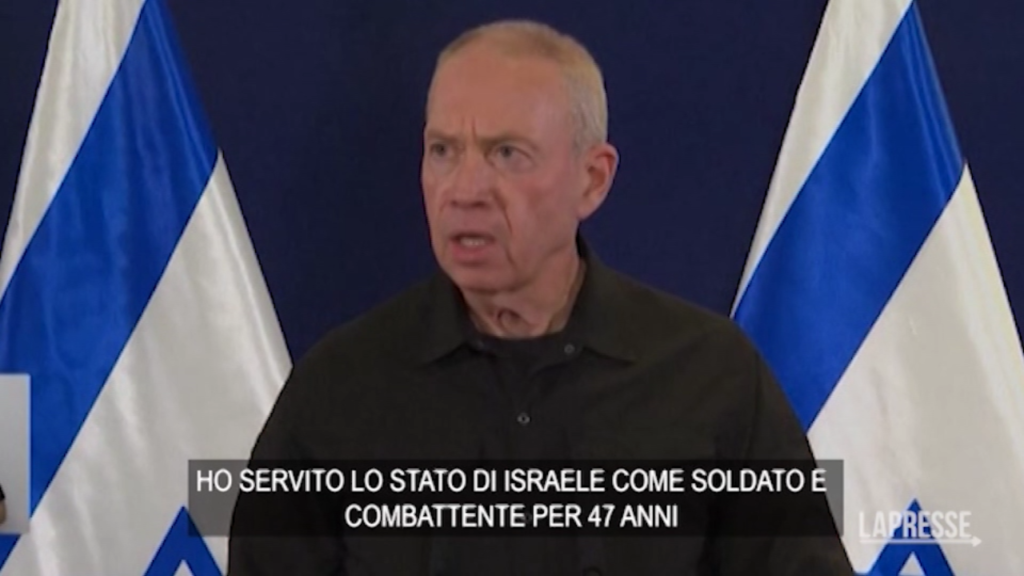 Il ministro della Difesa israeliano Yoav Gallant, parlando al Paese insieme con il primo ministro Benjamin Netanyahu e al leader dell’Unità Nazionale Benny Gantz. Gallant definisce l’assalto di Hamas “il peggior attacco terroristico che il mondo abbia mai visto. Quello che è successo non accadeva al popolo ebraico dal 1945.