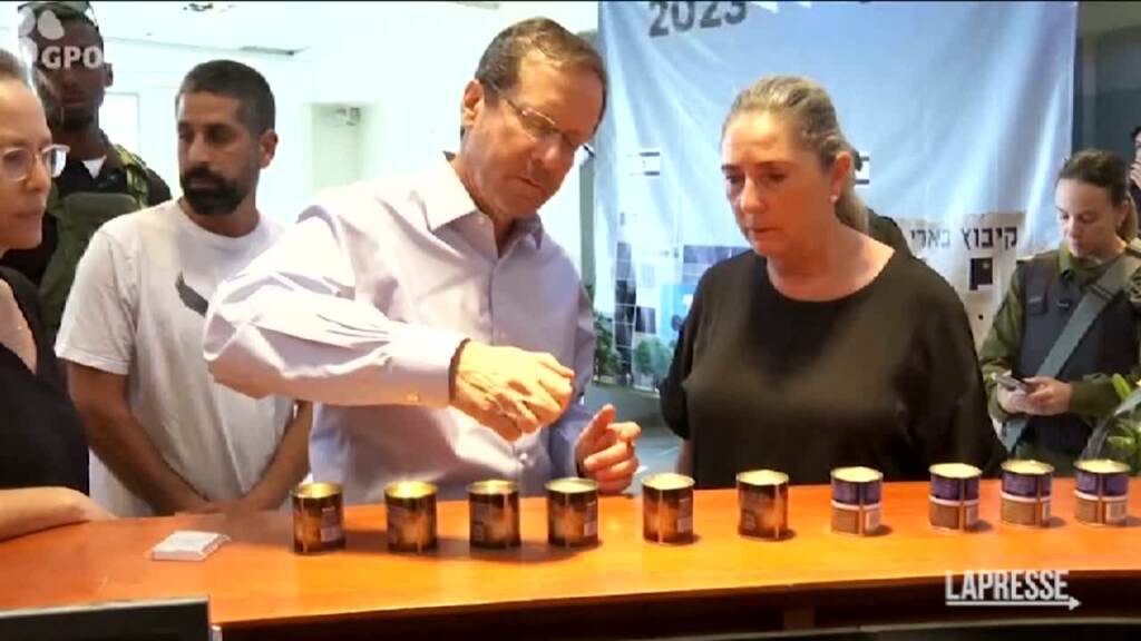 Le immagini della visita del presidente israeliano Isaac Herzog, insieme alla moglie Michal, nel kibbutz di Be’eri, tra le località attaccate da Hamas nell’assalto di sabato 7 ottobre. Ieri, 14 ottobre, aveva fatto lo stesso il premier israeliano Benjamin Netanyahu. Il kibbutz di Be’eri è il luogo in cui viveva la coppia di italoisraeliani ancora dispersa da sabato scorso e che si ritiene sia stata rapita da Hamas.