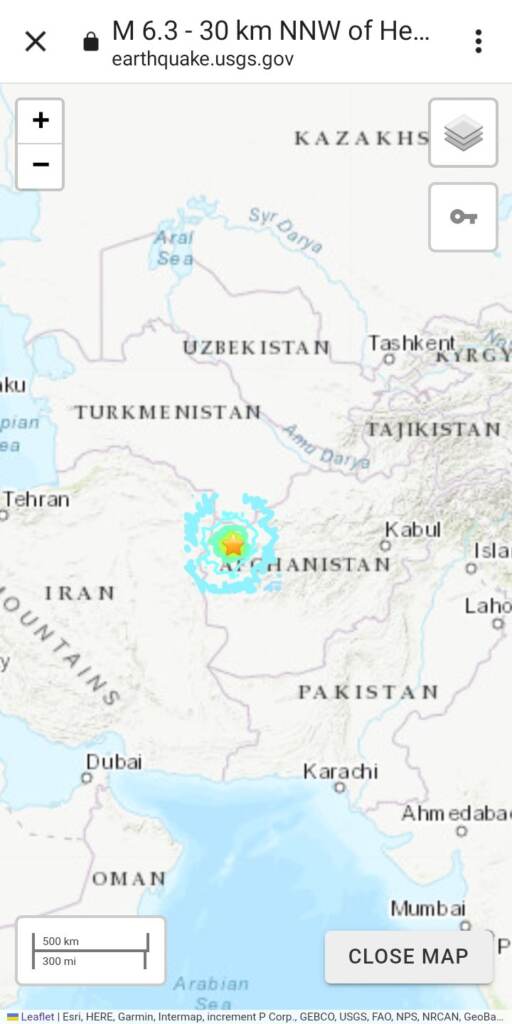 New- Magnitude 6.3 earthquake hits today northwest of Afghanistan’s #Herat city: USGS