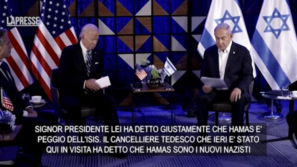 Il premier israeliano Benyamin Netanyahu ha incontrato a Tel Aviv il presidente Usa Joe Biden, in missione nell’area per discutere del conflitto tra lo Stato ebraico e Hamas, dopo l’aggressione del movimento estremista palestinese. “Come il mondo si è unito per sconfiggere il nazismo e si è unito per sconfiggere l’Isis, dobbiamo essere uniti per sconfiggere Hamas. Israele è unito per sconfiggere Hamas”, ha detto il primo ministro dello Stato ebraico. “Sconfigeremo Hamas e le forze della civilizzazione prevarranno”, ha sottolineato Netanyahu.