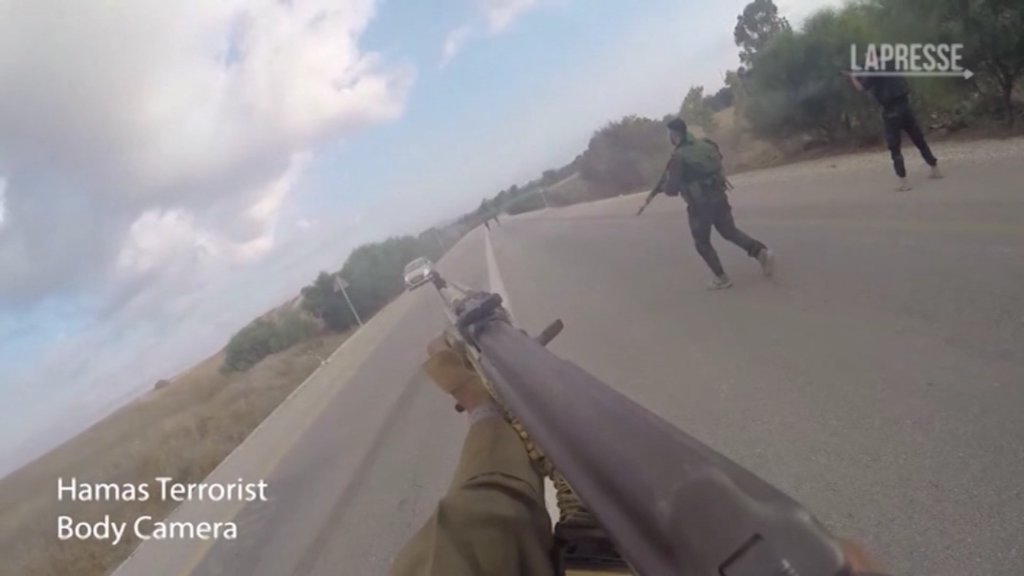 Il governo israeliano ha diffuso una breve sequenza di filmati catturati dalla telecamera indossata da un militante di Hamas durante l’assalto del 7 ottobre. Il video mostra alcuni uomini armati che uccidono due persone che viaggiavano a bordo di un’auto nella zona di confine tra Israele e la Striscia di Gaza. Il filmato sembra corrispondere a quello diffuso nei giorni successivi all’attacco, ripreso dalla telecamera del cruscotto posizionata nell’auto.