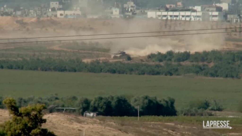 I mezzi militari corazzati di Israele continuano a muoversi attraverso il confine tra lo Stato ebraico e la Striscia. Le forze di Tel Aviv, intanto, continuano a combattere nel cuore di Gaza City, costringendo migliaia di palestinesi a fuggire verso Sud. Secondo il ministero della Sanità di Hamas il numero delle vittime ha superato quota 10mila da quando è iniziata la guerra il 7 ottobre scorso. Le immagini mostrano i movimenti dei tank israeliani e dietro lo sfondo degli edifici di Gaza devastati dalle bombe.