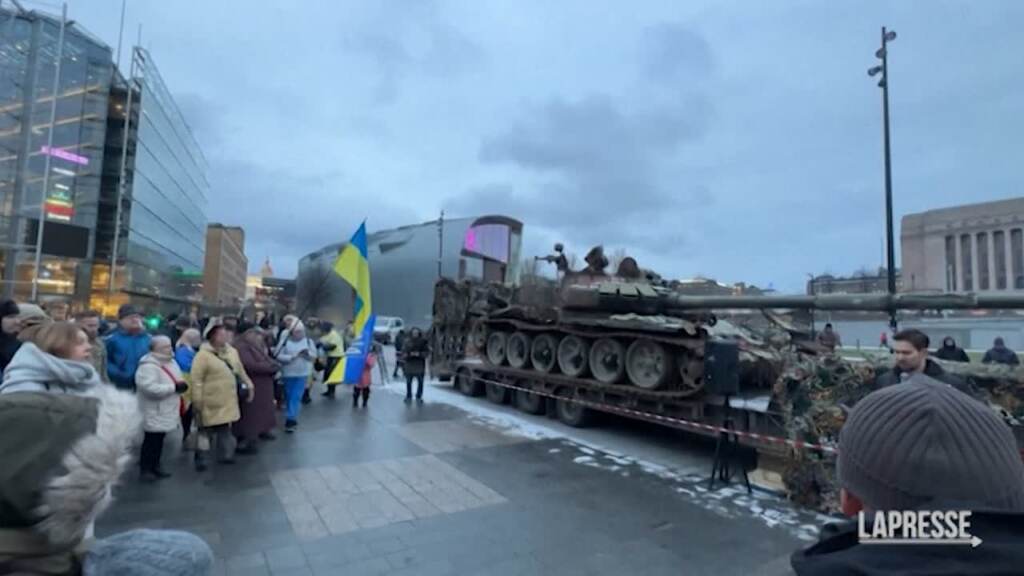 Un gruppo della comunità ucraina in Finlandia ha portato un carro armato russo distrutto in una piazza di Helsinki per sensibilizzare sulla guerra in corso in Ucraina. L’Associazione ucraina in Finlandia, che rappresenta gli ucraini residenti nel paese, ha installato il carro armato vicino al Parlamento di Helsinki. Decine di ucraini si sono radunati vicino al carro armato russo T72B3 e hanno organizzato una manifestazione per far mantenere alta l’attenzione sulla guerra.