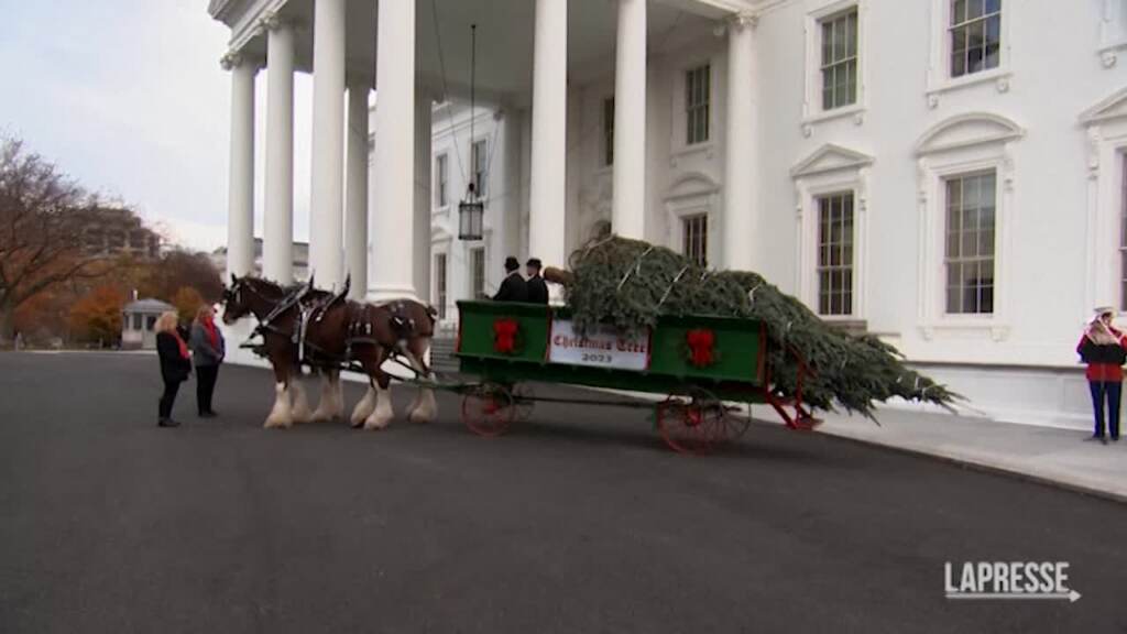 La first lady Jill Biden ha accolto alla Casa Bianca l’arrivo dell’albero di Natale ufficiale della residenza presidenziale per il 2023. Jill Biden si è presentata con un gruppo di membri di famiglie militari e ha posato per le foto di gruppo davanti all’albero augurando poi a tutti buone feste. “Spero che durante le vacanze tornerete tutti con le vostre famiglie e vi unirete a noi per vedere l’albero quando sarà decorato”, ha detto la signora Biden. L’albero è un abete alto 5,5 metri proveniente dal vivaio Cline Church di Fleetwood, nella Carolina del Nord.