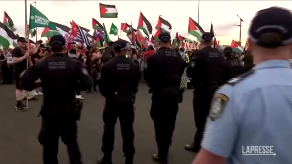Manifestazione pro-Palestina non autorizzata a Port Botany, sul lungomare di Sydney, in Australia, nella giornata di martedì 21 novembre. I manifestanti si sono scontrati con la polizia e 23 di loro sono stati arrestati. Nel corteo circa 400 persone hanno sventolato bandiere, suonato tamburi e chiesto un cessate il fuoco a Gaza, bloccando le operazioni di carico di una nave container controllata dalla compagnia di navigazione israeliana ZIM. Il premier del New South Wales (la regione di Sydney), Chris Minns, ha difeso l’azione della polizia, affermando che il blocco del porto avrebbe danneggiato l’economia, il suo Stato e il Paese.