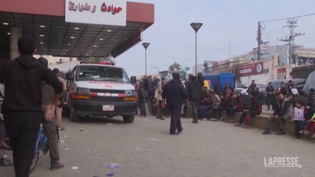 Feriti palestinesi arrivano all’ospedale Nasser, nel sud di Gaza, dopo i bombardamenti israeliani nella regione. Ambulanze e altri veicoli trasportano pazienti nella struttura di Khan Younis. Gli attacchi aerei e l’offensiva di terra hanno già allontanato molti residenti dal territorio. Le foto satellitari, domenica, hanno mostrato circa 150 carri armati, mezzi corazzati e altri veicoli israeliani a poco meno di 6 chilometri a nord di Khan Younis.