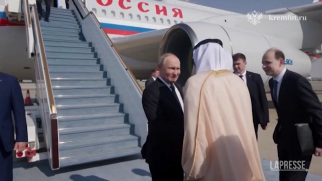 Vladimir Putin è arrivato ad Abu Dhabi, negli Emirati Arabi Uniti. Il presidente russo discuterà di petrolio, del conflitto in Ucraina e di quello tra Israele e Hamas. Prevista anche una sua visita in Arabia Saudita. Il viaggio di Putin durerà un solo giorno. Giovedì 7 dicembre accoglierà a Mosca il presidente iraniano Raisi.