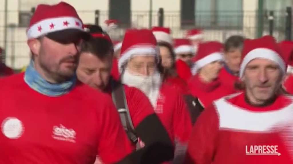 In Francia migliaia di persone vestite da Babbo Natale hanno preso parte a una corsa natalizia di 10 chilometri: l’evento fuori Parigi, a Issy-Les-Moulineaux.