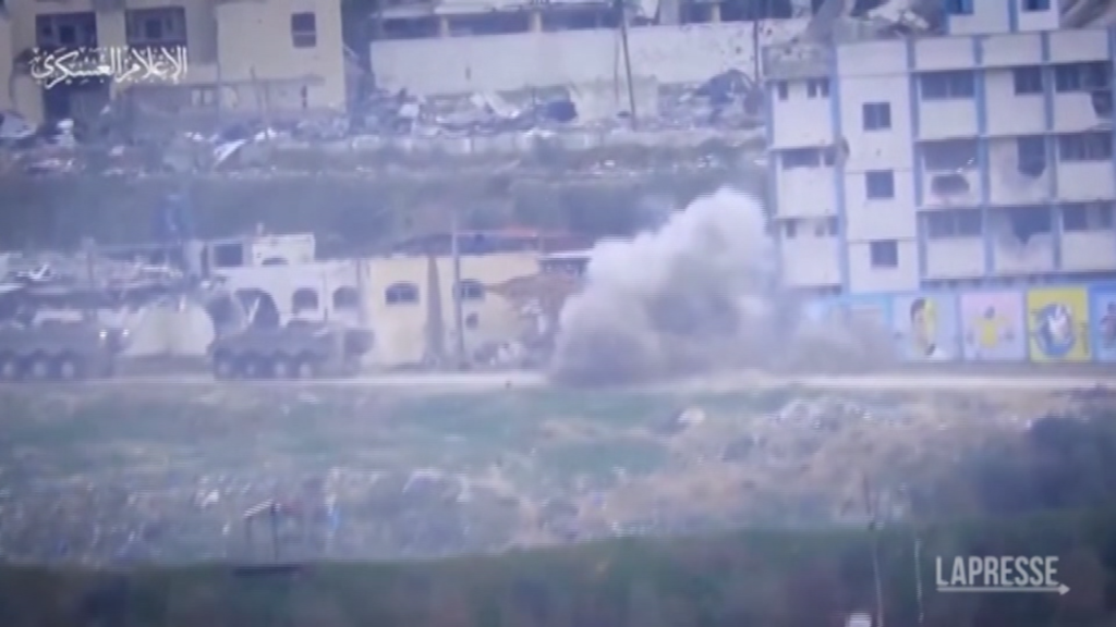 Il braccio armato di Hamas ha rilasciato un video in cui si vede l’attacco dei miliziani ad un convoglio dell’esercito israeliano. Nella clip un missile anticarro colpisce un camion che prende fuoco e da cui fuggono due militari, uno riesce a scappare sulle proprie gambe mentre l’altro, gravemente ferito, ha bisogno dell’aiuto dei suoi commilitoni. Fino ad oggi, come ricorda Ap, l’esercito di Tel Aviv ha ammesso la morte di 127 dei suoi soldati sostenendo di aver ucciso migliaia di miliziani di Hamas senza però fornire prove a riguardo.